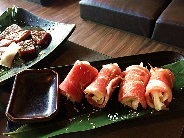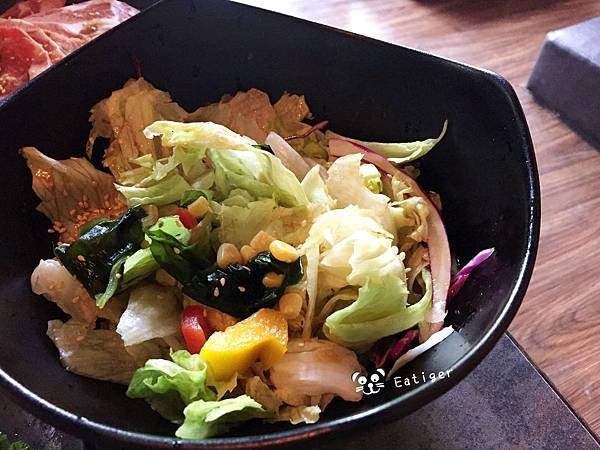 而一旁有生菜葉可以包肉,解油膩又健康。